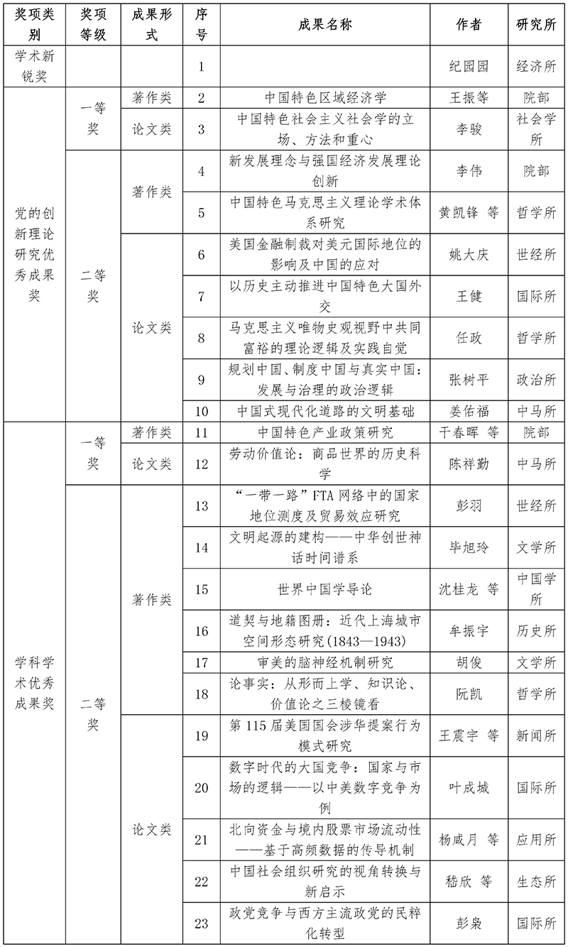上海社会科学院在本届上海市哲社奖评选中共计获奖23项,其中政治所张树平研究员获“党的创新理论研究优秀成果奖”论文类二等奖。